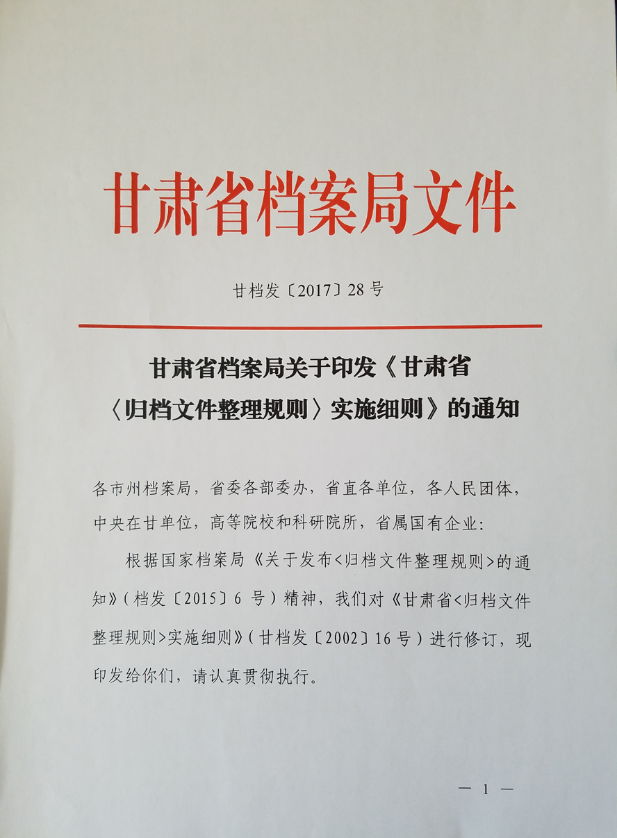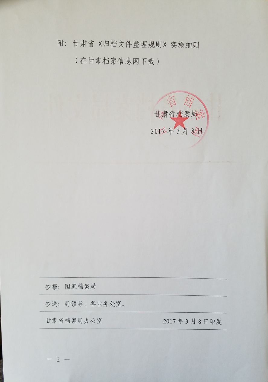 甘肃省《归档文件整理规则》实施细则