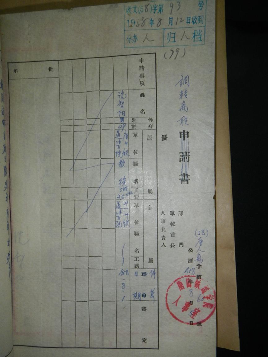沈智扬教授由唐山铁道学院人事处出具的调转离职命令