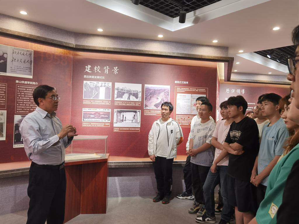 李引珍亲自担任校史馆讲解员,从学校的历史与沿革、成立与变迁、改制与更名等重大历史节点为同学们介绍了学校的发展历程。在李引珍的引导和生动讲解下,同学们认真聆听、仔细观看,从一块块图文展板、一件件历史实物、一个个动人故事中,深切地感受到了学校厚重的历史积淀、文化底蕴和历史使命,了解了学校自建校以来各个历史时期的风雨历程,从人才培养、学科建设、科学研究、师资队伍、合作办学等方面更加全面地了解校情校史和学校丰硕的办学成果,从一张张专家学者的照片中领略到京唐两院老一辈教育家立足西部、弘文励教的家国情怀,从一则则校友事迹中领略我校杰出校友的榜样风采。