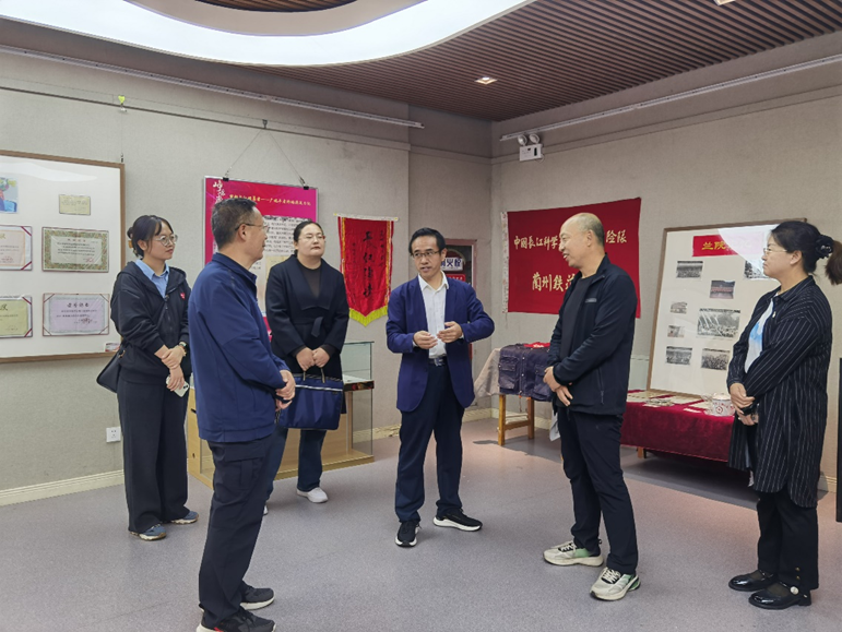 随后,调研组来到天佑美术馆,参观了正在举办的庆祝兰州交通大学建校66周年文献资料与历史藏品展览。校史馆负责人和美术馆工作人员为大家作了专业讲解。调研组一行通过五百余件照片及各类校史资料和历史藏品,了解到了几代兰交人扎根西北、传承京唐、艰苦奋斗、砥砺前行的艰辛发展历程。