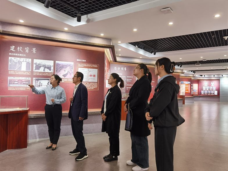 调研组首先参观了兰州交通大学校史馆,校史馆讲解员对展厅照片、文字、以及实物模型进行了详细的介绍和讲解,使其全面的了解学校的建校背景、发展历程、知名校友以及师资队伍建设和科研成果,也领会了在不同历史阶段的交大精神。